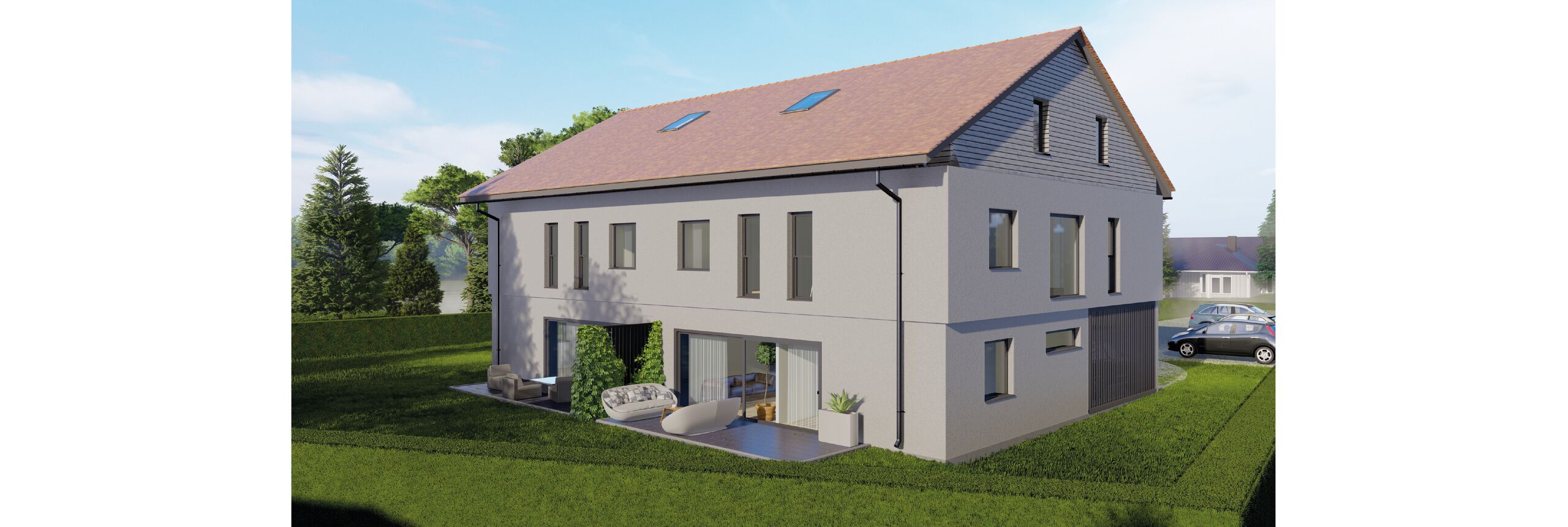 Each villa has one indoor and one outdoor parking space.